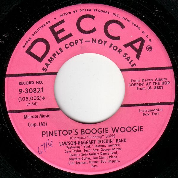 Der von Clarence "Pinetop" Smith 1928 geschriebene Titel "Boogie Woogie" ist eigentlich ein Instrumental und daher kein Songtitel im wörtlichen Sinn. Ich finde aber, man kann ihn als "Musiktitel" ohne weiteres in unsere Kategorie "Songtitel" aufnehmen. Außerdem bin ich mir garnicht so sicher, ob es vielleicht doch einmal einen Text dafür gegeben hat.