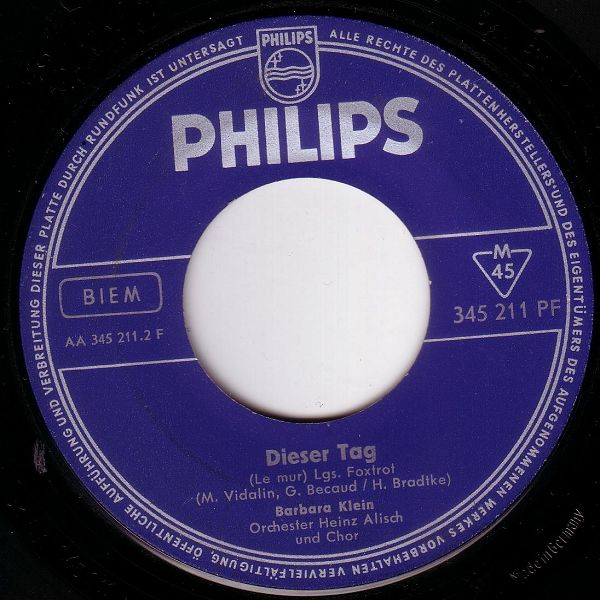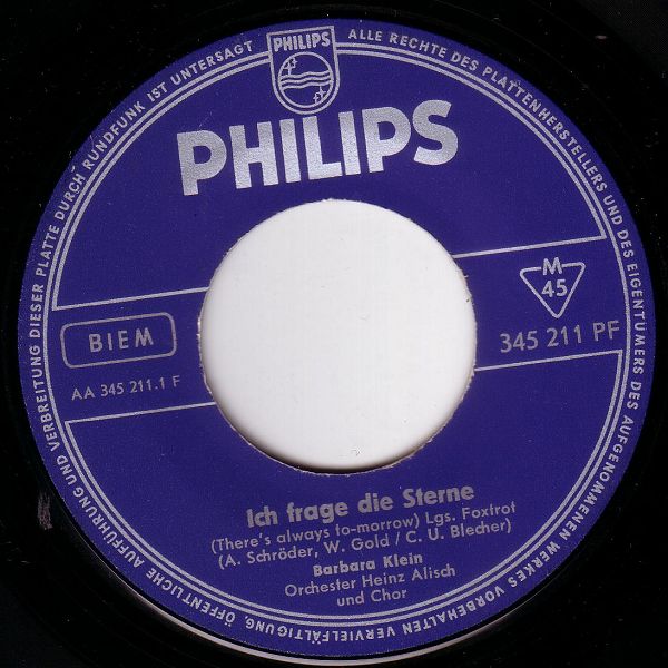 345211 "Ich Frage Die Sterne (There’s Always A To-Morrow)"/"Dieser Tag (Le Mur)"-1960 & Orchester HEINZ ALISCH und Chor,