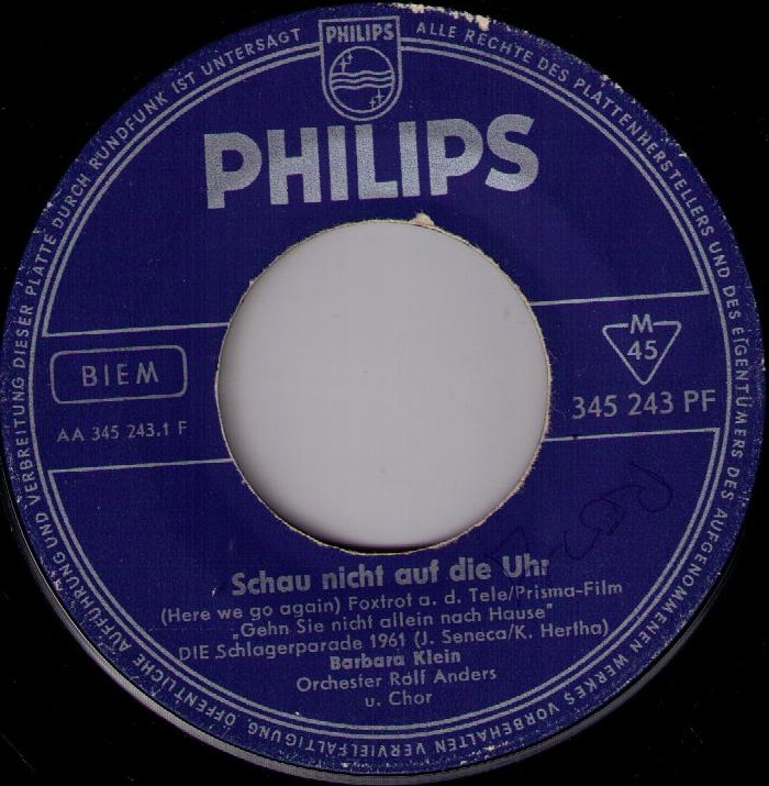 345243 "Schau Nicht Auf Die Uhr (Here We Go Again)"/"Einmal Wird Es Wieder Sein (If Only You'd Be Mine)"-1960 & Orchester HANS LAST und Die STARLETS),