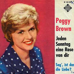 BROWN, PEGGY (MARGIT LORENZ-SCHUMANN) * 1930 in Böhmen, Sängerin, Vertreibung während des Krieges in die sowjetische Besatzungszone, Musikhochschule in Erfurt, während des Studiums hin u. wieder in Gera in einer Big Band, erste Versuche auf dem Gebiet des Jazz- u. Swing-Gesang, 1949 Engagement in Nienburg/Weser, Tingeln durch Niedersachsen mit einem kleinen Showprogramm, Heirat mit dem Posaunisten Schumann, seit 1950 ansässig in München, WILLI BÖSEL-Band, Auftritte in Ami-Clubs, nebenher Gesang beim Bayerischen Rundfunk, Akkordeon, Gitarre, Vibraphon u. Gesang in eigener Combo (erst Trio, später Quintett), seit 1952 Schallplatten unter MARGIT LORENZ und dann als MARGIT SCHUMANN für Tempo (erfolgreiche Duettaufnahmen mit FRED BERTELMANN, RALPH (CLAUS) HERWIG-u.a. "Teenager-Melodie", GERD FITZ-u.a. "Mondscheinpartie" u. RAINER BERTRAM), 1955 als PEGGY BRAUN vier Singles bei Austrophon, Bewerbung beim Produzenten WOLF KABITZKI, seit Juni 1960-Herbst 1963 bei Telefunken unter dem Künstlernamen PEGGY BROWN (die ersten 2 Titel als PEGGY BRAUN), 25.02.1961 Vorentscheidung zum Grand Prix d’Eurovision de la Chanson im Kurtheater in Bad Homburg ("Du Bist Meine Welt"), April 1961 "Melodie Aus Germany" (Backing: ROSI HOFMANN, ILLE WAPPLER, USCHI FISCHER, TEDDY KÄMPFER, BERND GOLONSKI, WOLFGANG SCHULT, SIGURD HILKENBACH u. GÜNTER KALLMANN), 1961 Hit "Denn Sie Fahren Hinaus Auf Das Meer"/"Alone On The Shore", 1961 Platz 15 in der Bravo-Auflistung "Stars des Jahres", Dez. 1961/Jan. 1962 Sondergastspiel im Deutschen Theater München ("Ein Festival der Harmonien und Rhythmen") mit etlichen Schlagerstars, 19.01.1962 in der Vorauswahl zu den 2. Deutschen Schlager-Festspielen ("Auf Wiederseh'n Mit Jacky"), 17.02.1962 Teilnahme bei den Deutschen Schlager-Festspielen ("Das Lexikon d'amour"-Platz 6) im Baden-Badener Kurhaus, 1962 als Duett PEGGY & JACKY (& CLAUS HERWIG), 1962 GESCHWISTER SCHUMANN (& ALEXANDER GORDAN), 23.April 1963 Teldec ("Eine Träne Fiel Ins Meer" & Die MOONLIGHTS, SIGURD HILKENBACH, PETER THIELE, ERICH FISCHER u. UDO LEIDOLT), Filme: "Schlagerparade 1961 (Geh’n Sie Nicht Allein Nach Hause)"-1961, "Davon Träumen Alle Mädchen"-1961, "Café Oriental"-1961, "Ramona"-1961, "Schlager-Revue 1962"-1961, "Wenn Die Musik Spielt Am Wörthersee"-1962, Auflösung ihrer eigenen Band, Gründung des PEGGY BROWN-Chores, Background-Arbeit vielseitig einsetzbar in Schallplattenstudios, beim Rundfunk u. in TV-Shows, Operettentitel mit Johannes Heesters, Synchron-Gesangstimme für Filmschauspieler u.a. SENTA BERGER, 1964 ZDF-TV-Musicals "Mitternachtszauber" u. "Automaten-Musical", Ende 1965 kurzer Auftritt bei Polydor, Titel auf einer Western-LP für Vogue, mit verschiedenen Interpreten auf einer Metronome-LP, 1975 Karriereende, 1996 CD "Denn Sie Fahren Hinaus Auf Das Meer" u. "Als Schlagerstars Fremd Gingen-German Pop Stars Sing Their Hits In English-Teil 1"-2001 für Bear Family Records