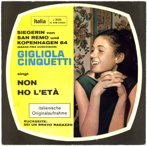 - Gigliola Cinquetti war mit dem Siegertiel als italienischer Beitrag für den Grand Prix d`Eurovision qualifiziert. Sie konnte auch diesen Wettbewerb mit großem Vorsprung gewinnen. Informationen und Ergebnis vom Grand Prix 1964 gibt es hier: viewtopic.php?t=6057