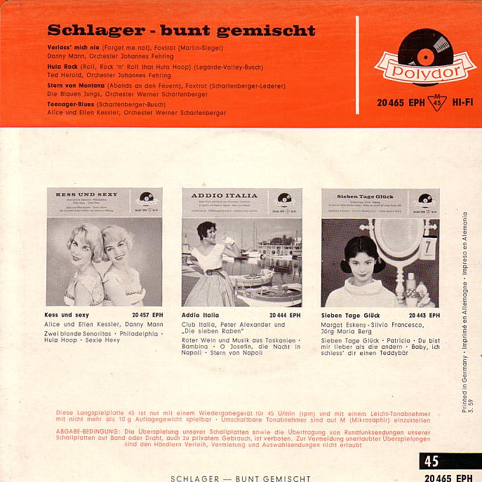 Diese Ep von Polydor erschien 1959 ( genau März 1959 ) :!: :!: :!: