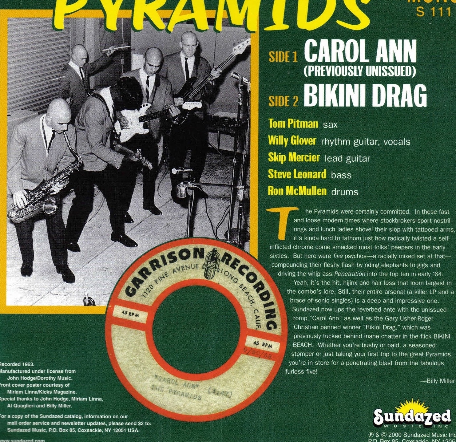 1959 beginnt Willy Glover Gitarre zu spielen. 1961 zieht er mit seinen Eltern von North Carolina nach Long Beach, Kalifornien, und beginnt dort mit einigen neuen Freunden im Klub „The Hutch“ aufzutreten. Ende 1962 nehmen sie in der Besetzung Willy Glover, Skip Mercier, Steve Leonard, Tom Pitman und Ron McMullen unter dem Namen „The Pyramids“ die Single The Pyramid Stomp auf. Ein Freund von Glover, John Hudge, bietet an die Single auf dem Label „Best Records“ zu veröffentlichen. Nach ausgiebigen Live-Auftritten der Band 1963 beschließt die Band eine Platte aufzunehmen. Glover hatte einige Lieder wie Here Come Marsha oder Carol Ann geschrieben und Leonard gefiel der Chantays Hit Pipeline. In veränderter Fassung wurde aus Pipeline Penetration. Im „Western Recordings“ Studio in Hollywood nehmen sie schließlich die Single Here Come Marsha / Penetration auf.