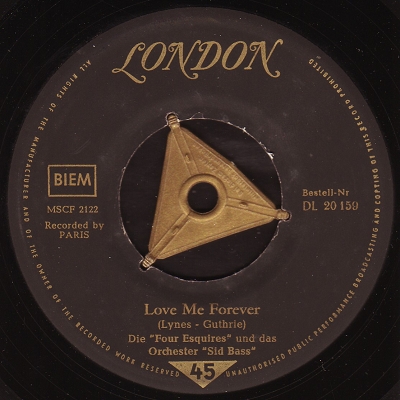 They had two other hit singles in the U.S. late in the 1950s, both on Paris Records. The first, “Love Me Forever“, featured orchestral backing by Sid Bass with a female session vocalist and peaked at # 25 in November on the Billboard Hot 100 in 1957. It also reached # 23 on the UK Singles Chart.