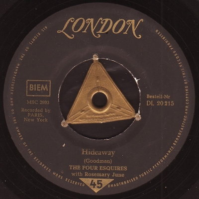 The second, “Hideaway“, had orchestral accompaniment by Richard Hayman, and peaked at # 21 in September in the U.S. in 1958.