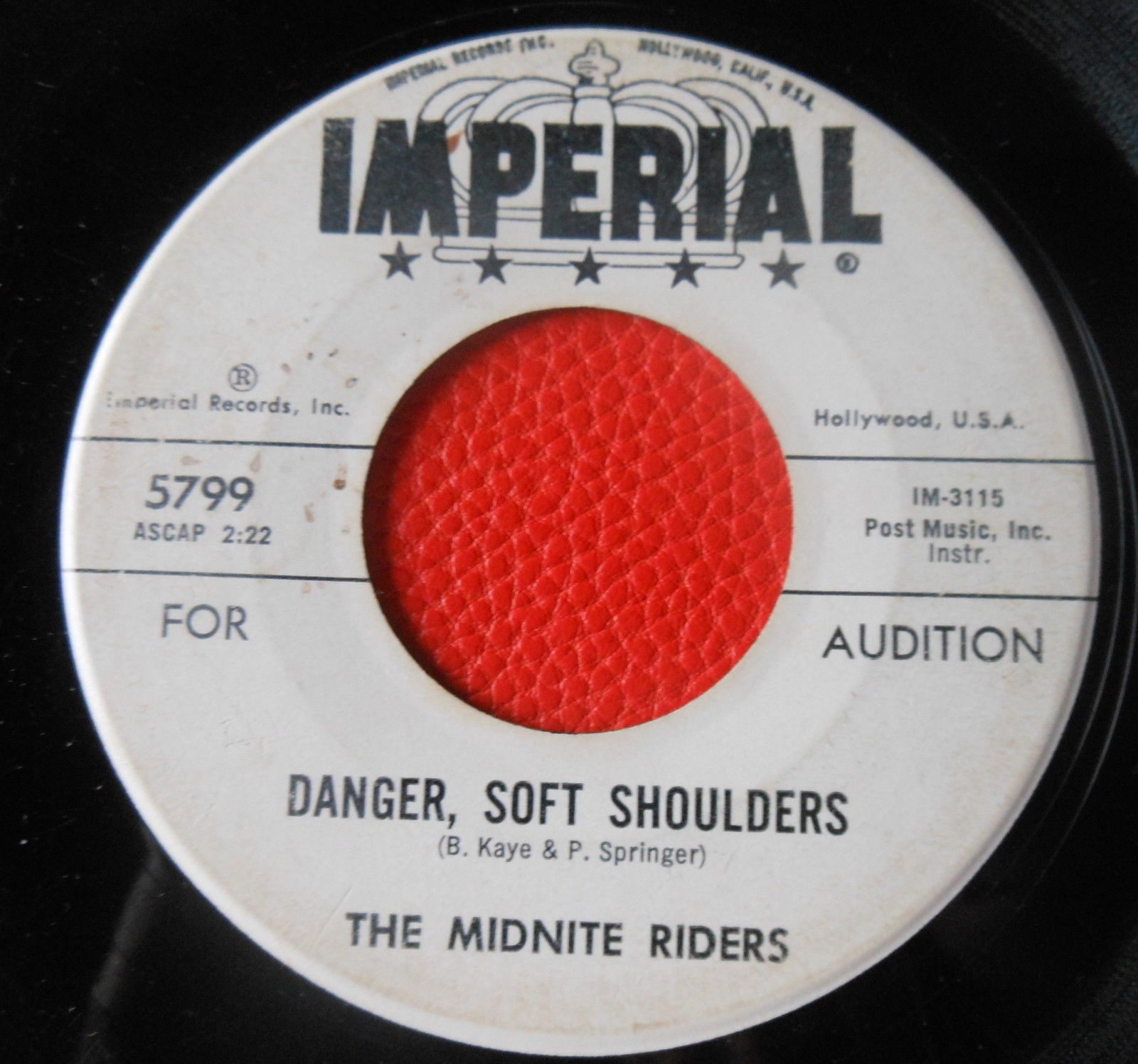 | Information: | MIDNITE RIDERS LONDON DL 20 491 A1: TIGER LILY (KAYE - SPRINGER) B1: DANGER, SOFT SHOULDERS (KAYE - SPRINGER) |