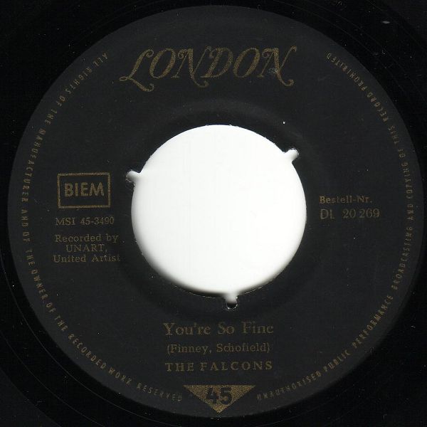 Die Falcons hatten bei uns lediglich eine Single, trotzdem waren sie mit ihrem "You're So Fine", dass von den Gruppenmitgliedern Lance Finney und Willie Shofield geschrieben wurde, relativ populär. Von der holländischen Indo-Gruppe The Javalins gab es davon sogar eine deutschsprachige Version
