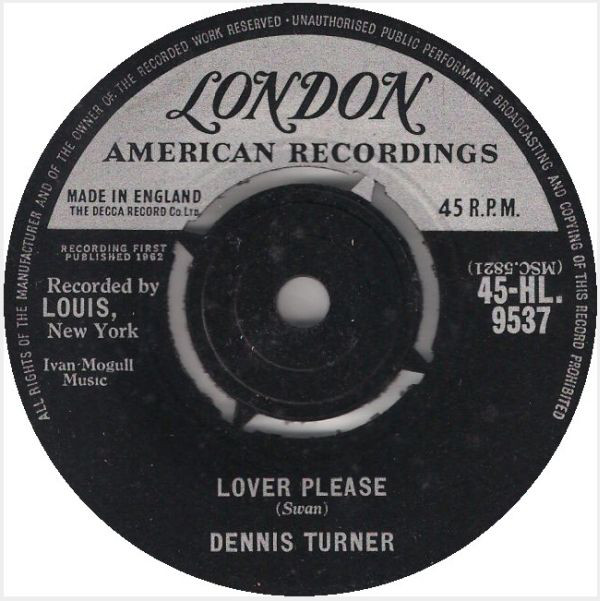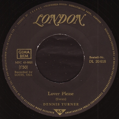 | Information: | DENNIS TURNER LONDON DL 20 618 A1: LOVER PLEASE (SWAN) B1: HOW MANY TIMES (TURNER) |