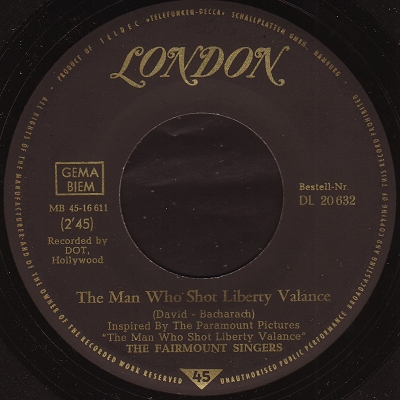 | Information: | FAIRMOUNT SINGERS LONDON DL 20 632 A1: COCKLES AND MUSSELS (ARR. BY JIMMY RODGERS) B1: THE MAN WHO SHOT LIBERTY VALENCE (DAVID - BACHARACH) |