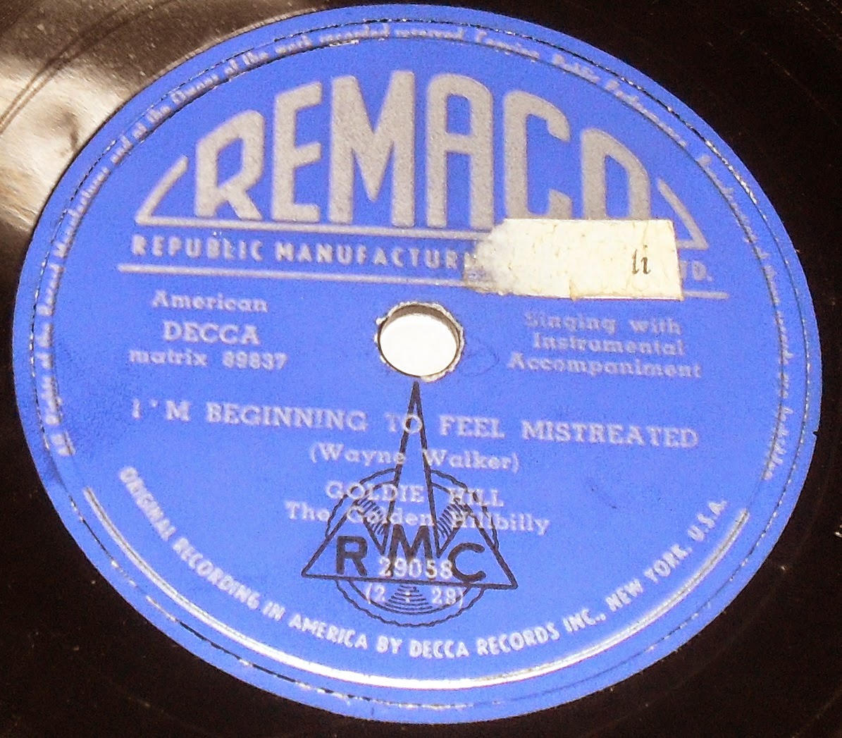 06 56....9-29955....GOLDIE HILL..THE GOLDEN HILLBILLY I'm Beginning To Feel Mistreated (45 89837)/Sample My Kissin' (45 89835)