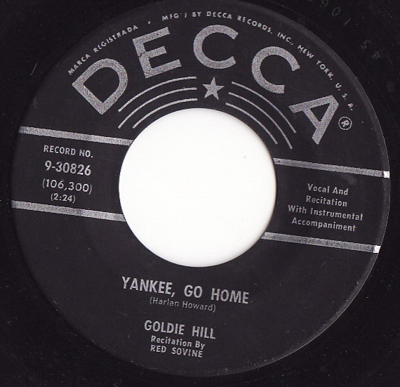 01 59....9-30826....GOLDIE HILL And RED SOVINE Yankee, Go Home/What's Happened To Us