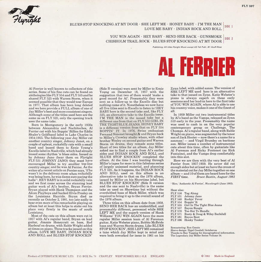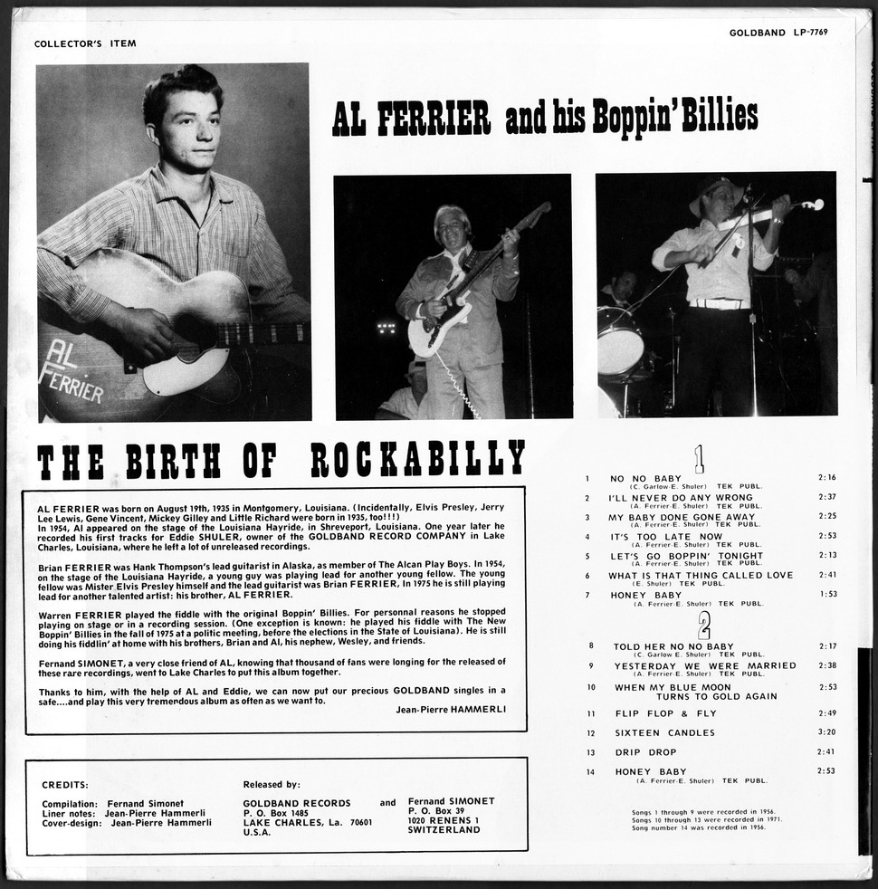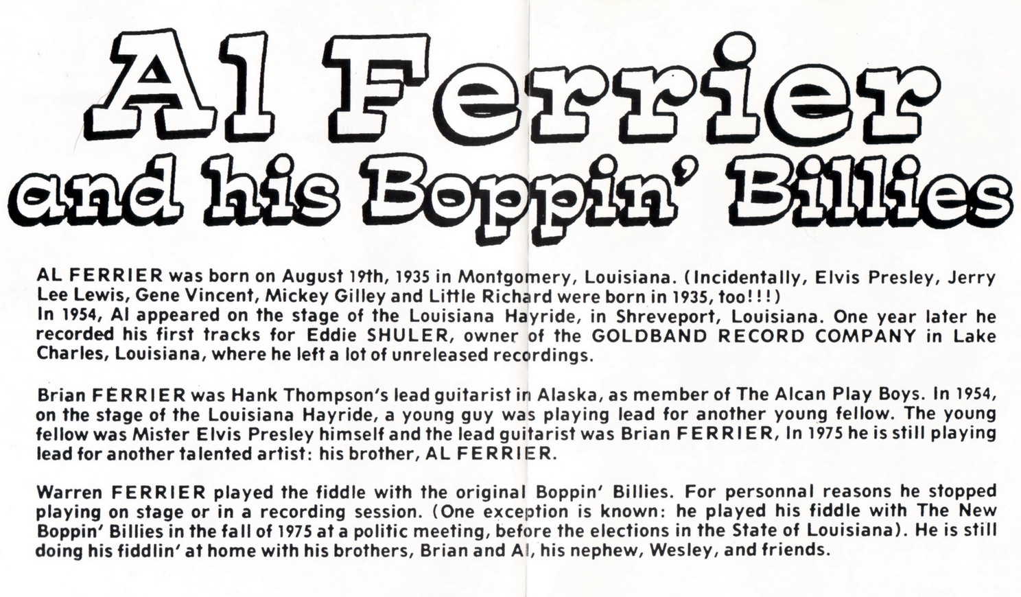 Ferrier gründete zusammen mit seinen beiden Brüdern die Band The Boppin‘ Hillbillies. Ihre erste Session fand im Frühjahr 1955 statt, bei der der Song No No Baby eingespielt wurde. Dieser erschien als erste Single im April 1956. Zur selben Zeit absolvierten Ferrier und seine Band eine Reihe von Auftritten in der weithin hörbaren KWKH Louisiana Hayride, wo Ferrier den jungen Elvis Presley kennenlernte. Presley hörte Ferriers Song Let’s Go Boppin‘ Tonight und wollte ihn zu seinem Produzenten Sam Phillips schicken; Ferrier verweigerte jedoch seine Zustimmung. Er bereute dies später und sagte dazu: „That’s one big mistake I made by not leting Elvis recording it.“