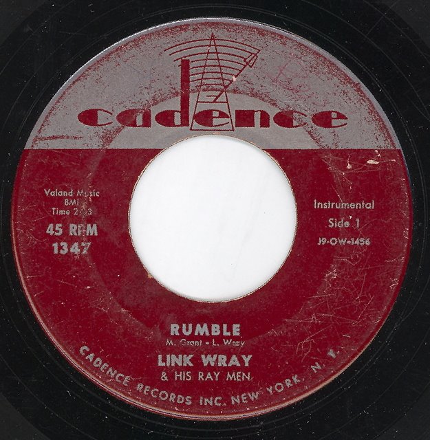 Original-Label: Cadence 1347 (3/1958); Re-Issue: „Rumble“, Cadence 1605 (B-Seite: Ernie Englund) 10/1961, deutsche Matritzenherstellung F 8 ( Juni/1958), Composer von A : “Milt Grant – Wray” und B : “Milt Grant – Wray”, deutsche Platte auf rosa Label, Placierung Hitparade in den USA: „Rumble“ 4/58, # 16