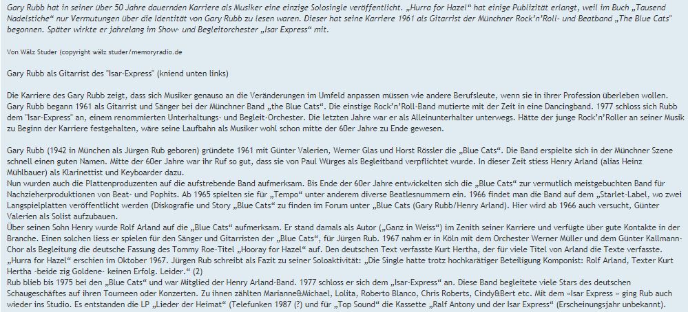 Ein Interpret mit engl. sprachigem Akzent deutsch gesungen, evtl. aus Bayern kommend und evtl. auch ohne Verwendung eines Pseudonyms. Mitglied in der Band von HENRY ARLAND???
