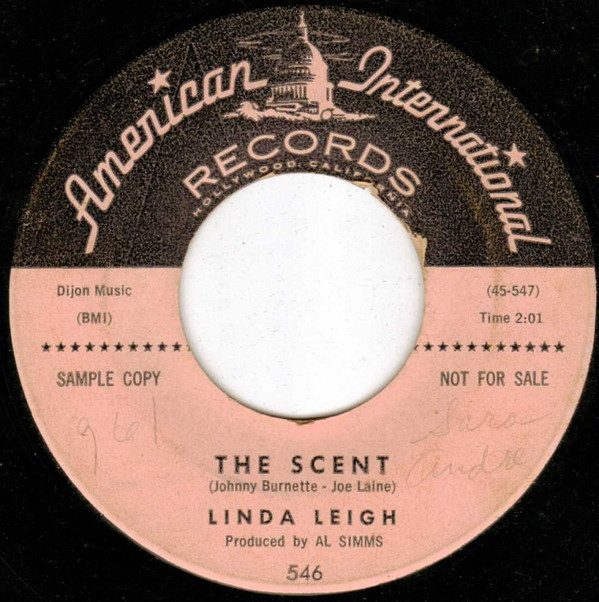 Im Februar 1960 erschien American International 546 von LINDA LEIGH mit "The Scent" von Johnny Burnette als Co-Autor. Anhänge an diesem Beitrag Dateiname: Leigh,Linda04aThe Scent.jpg Dateigröße: 113.77 KB Titel: Leigh,Linda04aThe Scent.jpg Heruntergeladen: 265