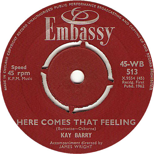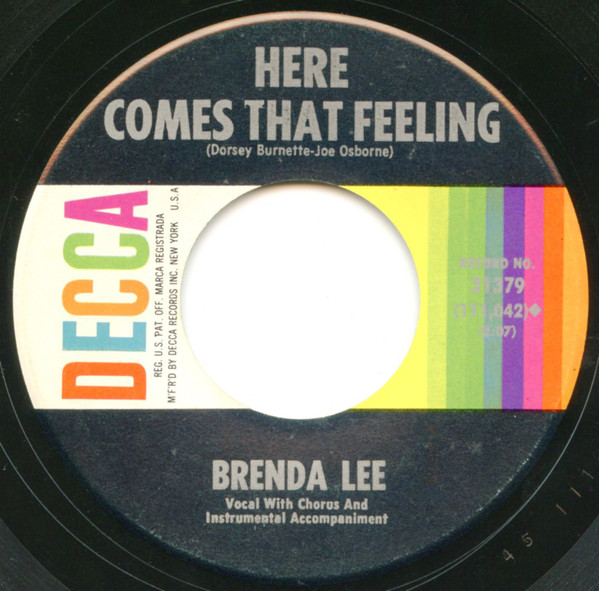 Die am 29. August 1961 eingespielte Fassung "Here Comes That Feeling" von Brenda Lee gibt es oben auf Seite 1 auf deutscher Brunswick. Hier nun auf US-Decca und auch in der Coverversion von KAY BARRY auf Embassy. Anhänge an diesem Beitrag Dateiname: Lee,Brenda19.jpg Dateigröße: 96.8 KB Titel: Heruntergeladen: 254 Dateiname: Barry,Kay09aHere comes that.jpg Dateigröße: 79.23 KB Titel: Heruntergeladen: 256