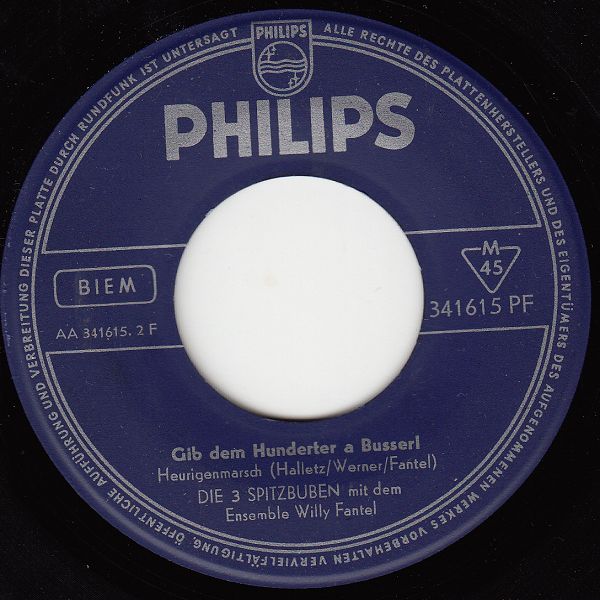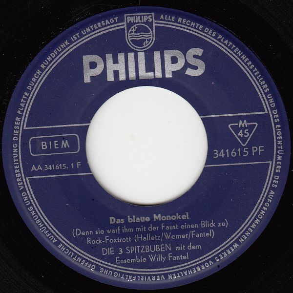 ?? 62....341 615 PF....DIE 3 SPITZBUBEN mit dem Ensemble Willy Fantel..Das blaue Monokel (Denn sie warf ihn mit der Faust einen Blick zu)/Gib dem Hunderter a Busserl