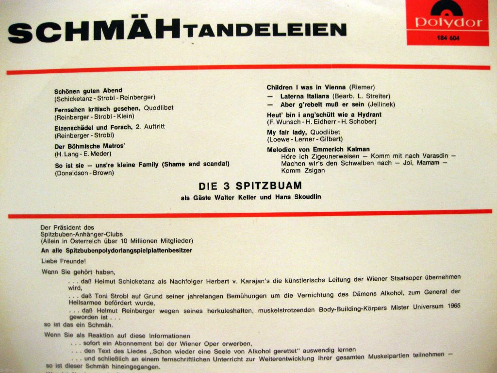 Ich habe sie ins Forum geholt, weil sie in der Rocknrollzeit begonnen haben und zumindest bei uns in Wien auch als Plattenstars ein wichtiger Faktor in der Musik-Szene waren. Neben ihren Parodien, die natürlich sehr beliebt waren, nahmen sie auch Cover-Versionen von bekannten Schlagern auf. Sie waren ja exzellente Musiker.