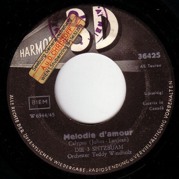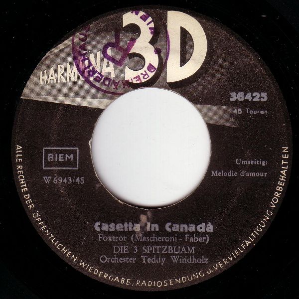 03 58....36425....DIE 3 SPITZBUAM Orchester Teddy Windholz..Casetta in Canadà/Melodie d'amour