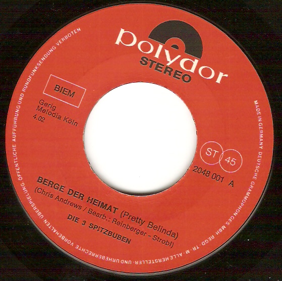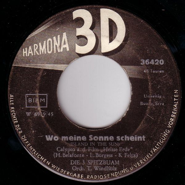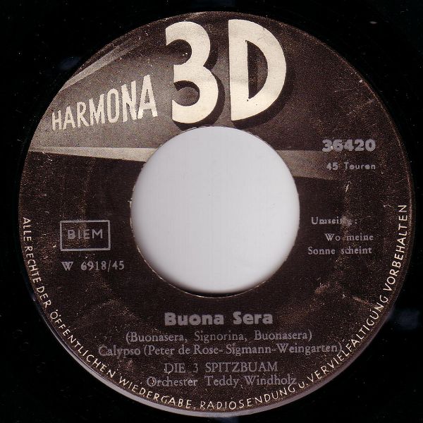 12 57....36420....DIE 3 SPITZBUAM Orchester Teddy Windholz..Buona Sera (Buonasera, Signorina, Buonasera)/DIE 3 SPITZBUAM Orch. T. Windholz..Wo meine Sonne scheint (Island In The Sun)