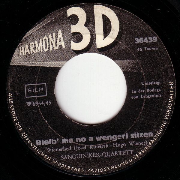 05 58....36439....SANGUINIKER-QUARTETT..Bleib' ma no a wengerl sitzen/DIE 3 SPITZBUAM Orchester Klaus Alzner..In der Bodega von Langenlois Parodie a.d. Calypso "In der Arena von Guayaquil"