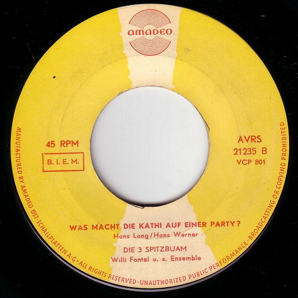 05 62....AVRS 21235 A....DIE 3 SPITZBUAM Willi Fantel u. s. Ensemble..Almtwist/ B....Was macht die Kathi auf einer Party?