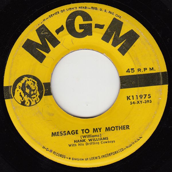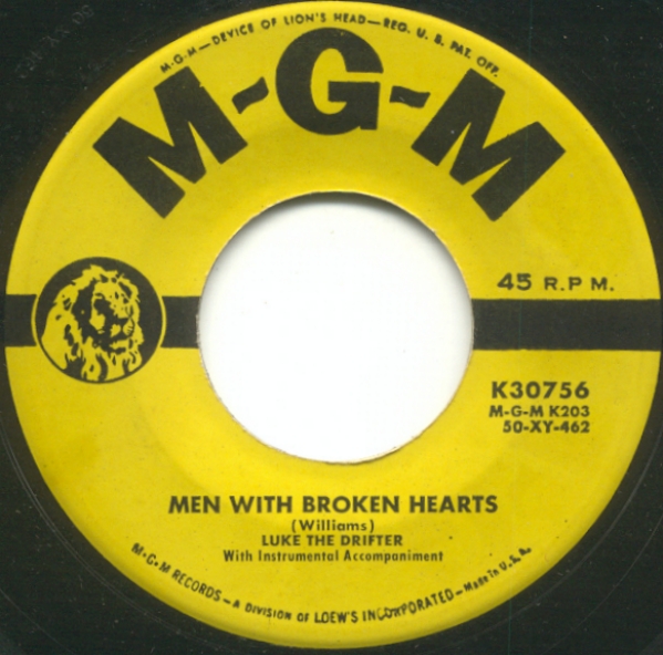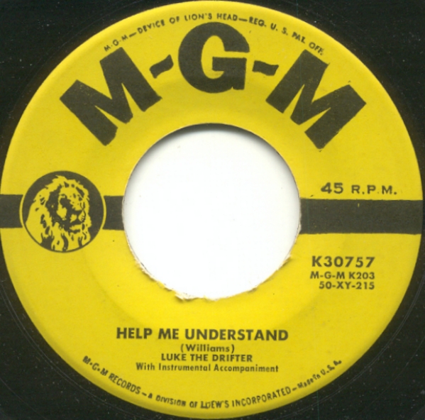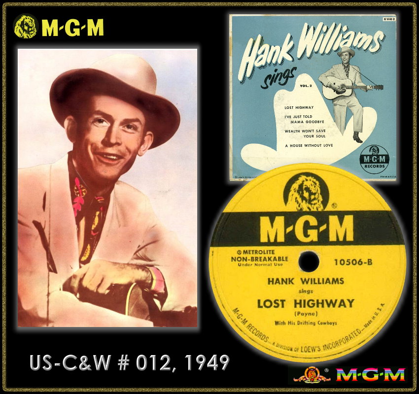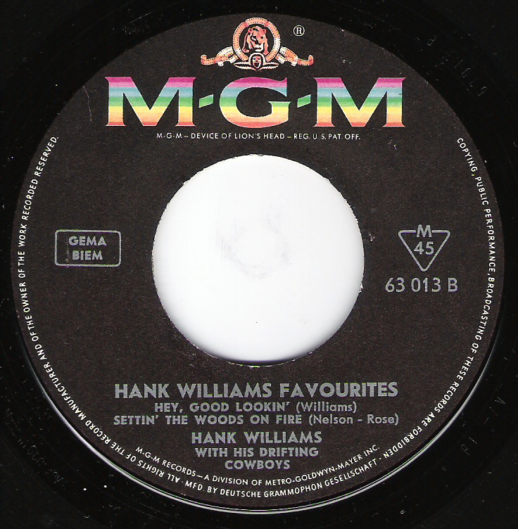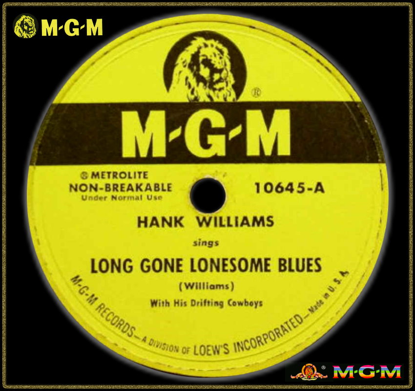 Gefördert vom einflussreichen Songwriter und Produzenten Fred Rose machte Williams 1946 seine erste Aufnahme für Sterling Records (“Never Again (Will I Knock On Your Door)“), die Anfang 1947 als Sterling 201 auf den Markt kam. Nach ersten erfolglosen Aufnahmen für das kleine Sterling-Label wurde Hank Williams’ erste Single für MGM-Records im Herbst 1947 zum ersten Hit. Seine erste Single beim neuen Label (“Move It On Over“) wurde 1947 zu einem Country-Hit # 4. Im August dieses Jahres wurde Williams ständiges Mitglied der Radioshow Louisiana Hayride in Shreveport/Louisiana. Aufgrund der Popularität der Show und der großen Reichweite des Senders wurde er im gesamten Südosten der USA bekannt. “Lovesick Blues“ von 1949 wurde sein nächster erster großer # 1-Hit, der auch in den Pop Charts erfolgreich war.
