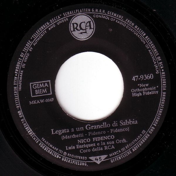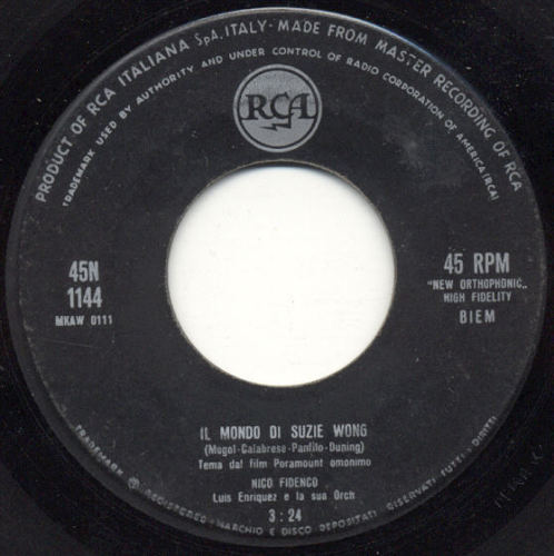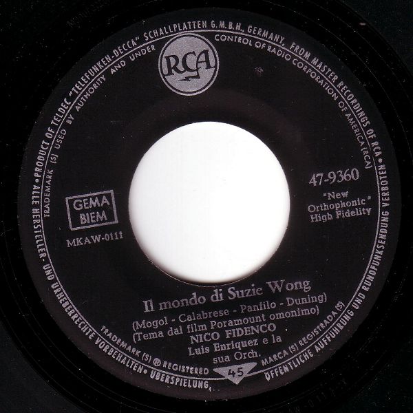 09 61....47-9360....NICO FIDENCO Luis Enriquez e la sua Orch. ..Il mondo di Suzie Wong/NICO FIDENCO Luis Enriquez e la sua Orch. Coro della RCA..Legata a un Granello di Sabbia (I: RCA ITALIANA 1144/1166)