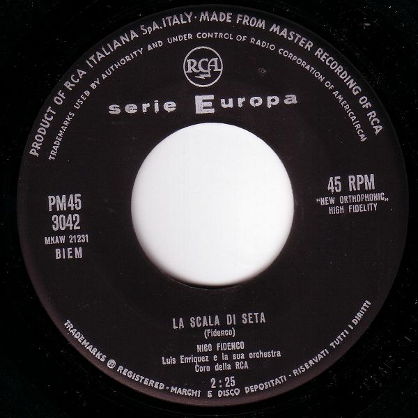 ?? 61....PM45 3042....NICO FIDENCO Luis Enriquez e la sua orchestra Coro della RCA..La scala di seta (MKAW 21231)/Tra le piume di una rondine (MKAW 21232)
