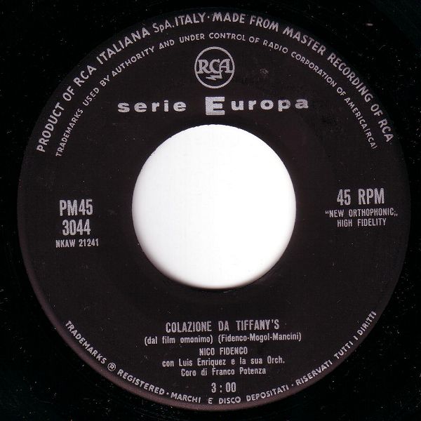 ?? 61....PM45 3044....NICO FIDENCO con Luis Enriquez e la sua orch. Coro di Franco Potenza..Colazione da Tiffany (Moon River) (NKAW 21241)/Audrey (NKAW 21242)