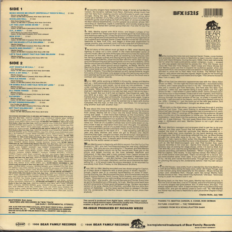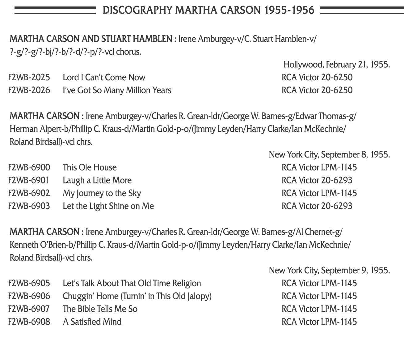 Da Martha Carson erfolgreich versuchte Rocknroll und Gospel zu verbinden, ist sie geradezu prädestiniert für unser Forum.