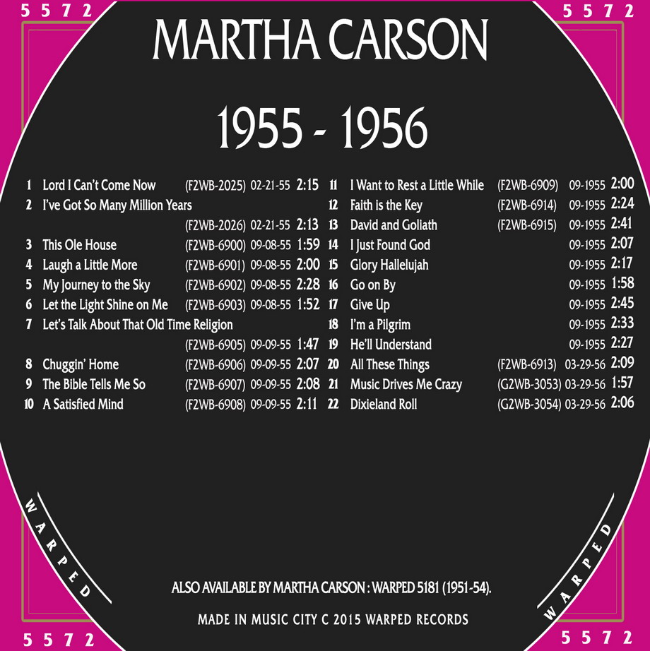 Die Sängerin und Gitarristin Martha Carson wurd am 19. Mai 1921 in Neon, Kentucky, als Irene Amburgey geboren und verstarb am 16. Dezember 2004 in Nashville, Tennesse.