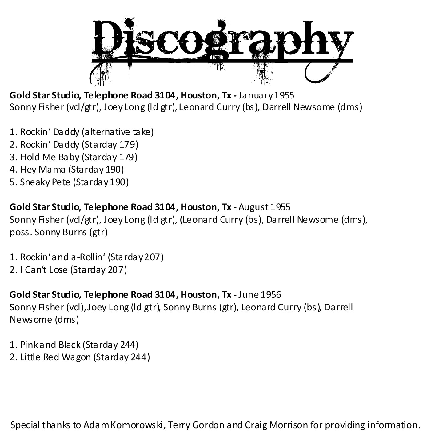 Du hast den Namen Sonny Fishback auf PEACOCK erwähnt, was frühestens 1965 möglich wäre, daher kann ich dazu nichts sagen. Aber ich fand diesen Namen 1960 beim SKOOP-Label. Hast Du eine Ahnung, ob es sich auch hier um Sonne Fisher handelt?