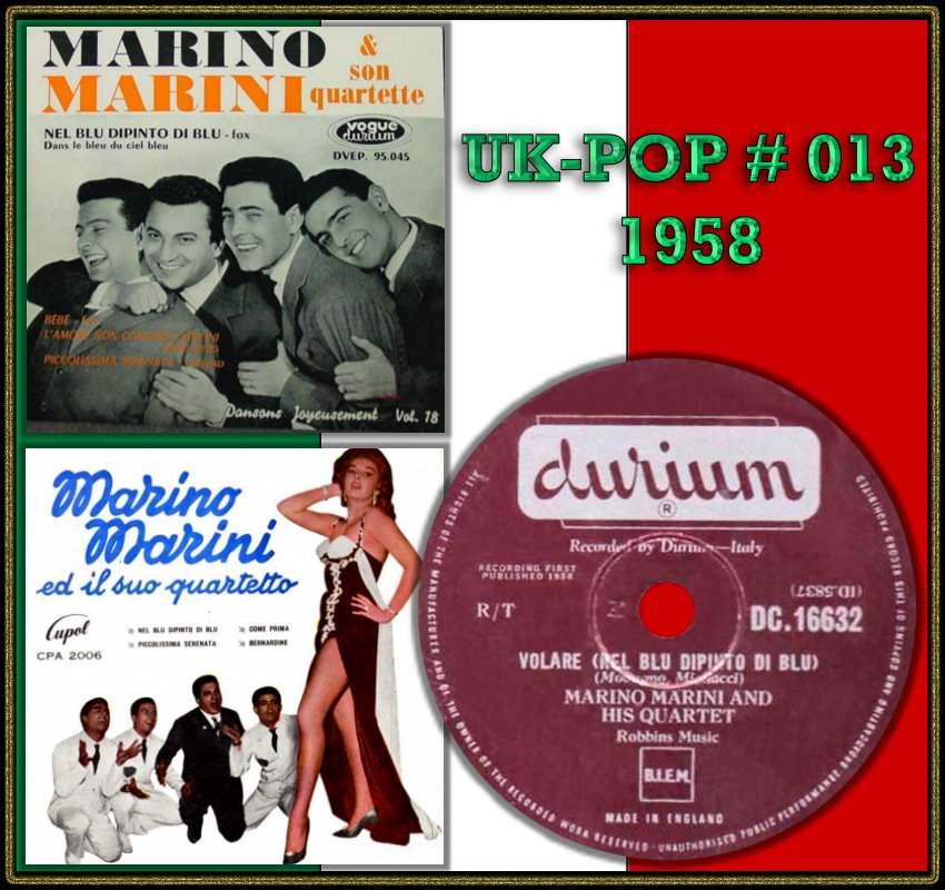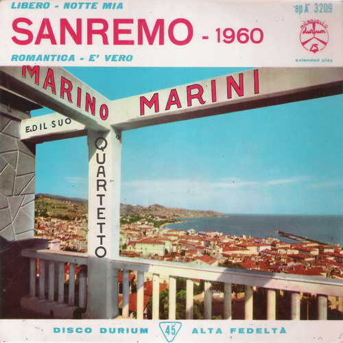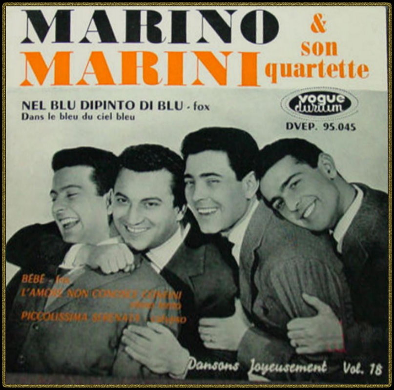 1955 suchte er mittels Zeitungsinserat "junge Musiker ohne Erfahrung, welche fröhlich sind und auch gerne singen". "Unfröhliche" brauchen sich erst garnicht zu melden. Von den zahlreichen Bewerbern wählte er sich Tony "Toto" Savio, Gitarre, Sergio Cori, Schlagzeug, und Ruggiero Cori, Bass und Gesang, aus. Er selbst spielte Klavier und sang auch fallweise solo. Das war die Geburtsstunde des Marino Marini Quartetts, dass in dieser Besetzung bis 1960 existierte und zur profiliertesten und erfolgreichsten Musik-Formation Italiens wurde und deren Popularität auch über die Grenzen Italiens weit hinausging.