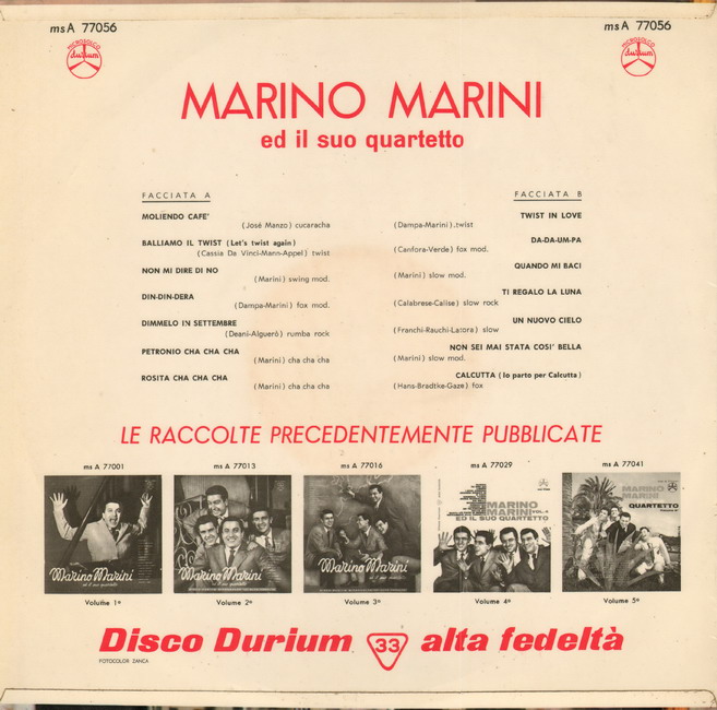Marino Marini wurde am 11. Mai 1924 in Seggiano in der Provinz Grosetto, Toskana, Italien, geboren und verstarb am 20. März 1997 in Mailand, Lombardei, Italien. Nach kurzem Studium der Elektrotechnik wechselte er zum Klavier- und Violin-Studium und zur Kompositionslehre im Konservatorium Rossini in Bologna. 1947 nach seinem Militärdienst wurde er künstlerischer Leiter der Metropolitan Music Hall in Neapel und beschäftigte sich sehr eingehend mit der neapolitanischen Folklore. 1948 ging er für sechs Monate in die USA, wo er mit Dizzie Gillespie, Stan Kenton und Charlie Ventura zusammentraf, was seine musikalische Einstellung sehr prägte. Nach seiner Rückkehr aus den USA schrieb Marini die Musik für Filme und Revuen und wirkte bei Aufführungen in Neapel und Rom auch selbst mit.