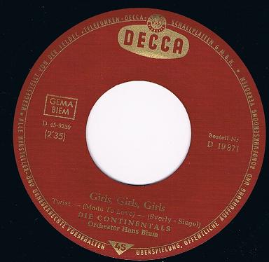 09 62....D 19 371....DIE CONTINENTALS..Hey Susi! (Palisades Park)/Girls, Girls, Girls (Made To Love)