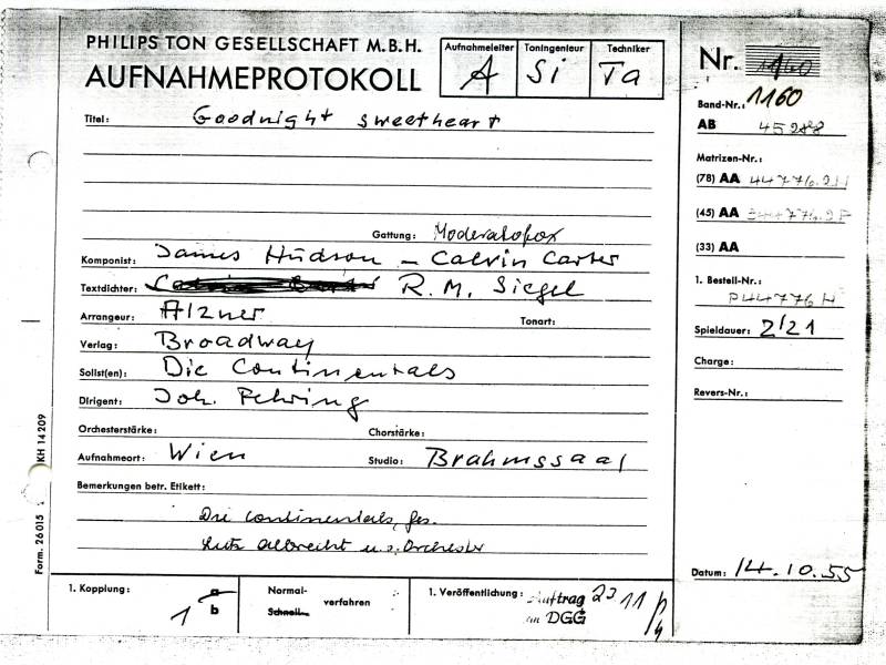 Leider konnte ich über die deutschsprachigen Continentals nur herausfinden, dass sie bei PHILIPS und DECCA einige Solo-Singles veröffentlichten und auch als Begleitchor bei diversen Interpreten fungierten. Außerdem soll Hans Blum Mitglied dieser Gesangsgruppe gewesen sein wofür ich aber bisher keine Bestätigung fand. Ob die PHILIPS- und die DECCA-Continentals identisch waren ist auch nicht zu 100% sicher.