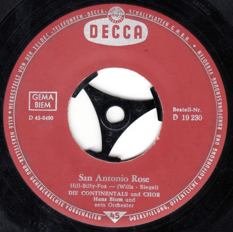 09 61....D 19 230....DIE CONTINENTALS und CHOR Hans Blum und sein Orchester..San Antonio Rose/Rio Grande (Der Rio Grande trägt ein Boot)