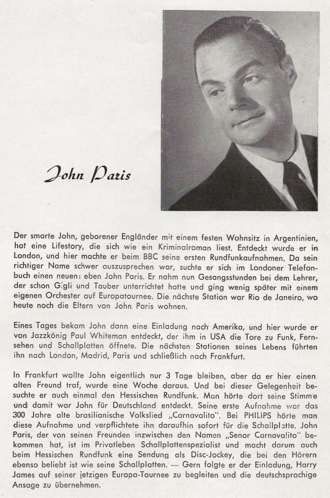 PARIS, JOHN * 12.04.1914 in Liverpool, + 1997 in Frankfurt, studierter Jazz-Sänger,