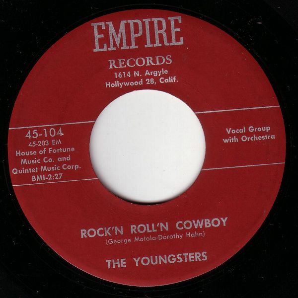 06 56....45-104....THE YOUNGSTERS..Rock'n Roll'n Cowboy (45-203 EM)/Shattered Dreams (45-204 EM) (