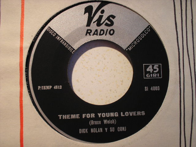 Dick Nolan y su Conj, Foot Tapper (Marvin-Welch) / Theme for young lovers (Bruce Welch), italienische Single von VIS-Radio, italienische Pressung. Vom Sound her erinnert es stark an die Shadows, nun ja es handelt sich ja auch um Shadows-Kompositionen.