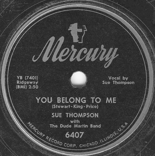 07 52....6407-X45....SUE THOMPSON..You Belong To Me/You're My Angel On The Outside