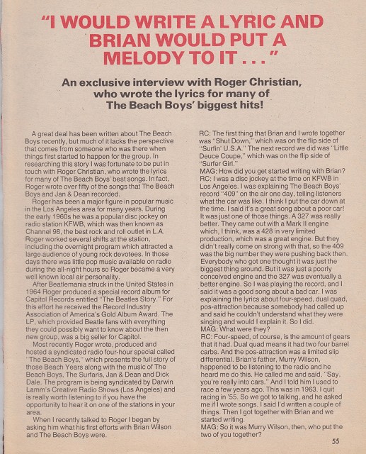 der zweite wichtige co-writer für Brian Wilson nach Gary Usher war Roger Christian. Informationen über ihn sind sehr dünn, deshalb ein wenig wikipedia. Wer weiß mehr und kann evtl ein Foto von Roger einstellen? Dogear, Christian?