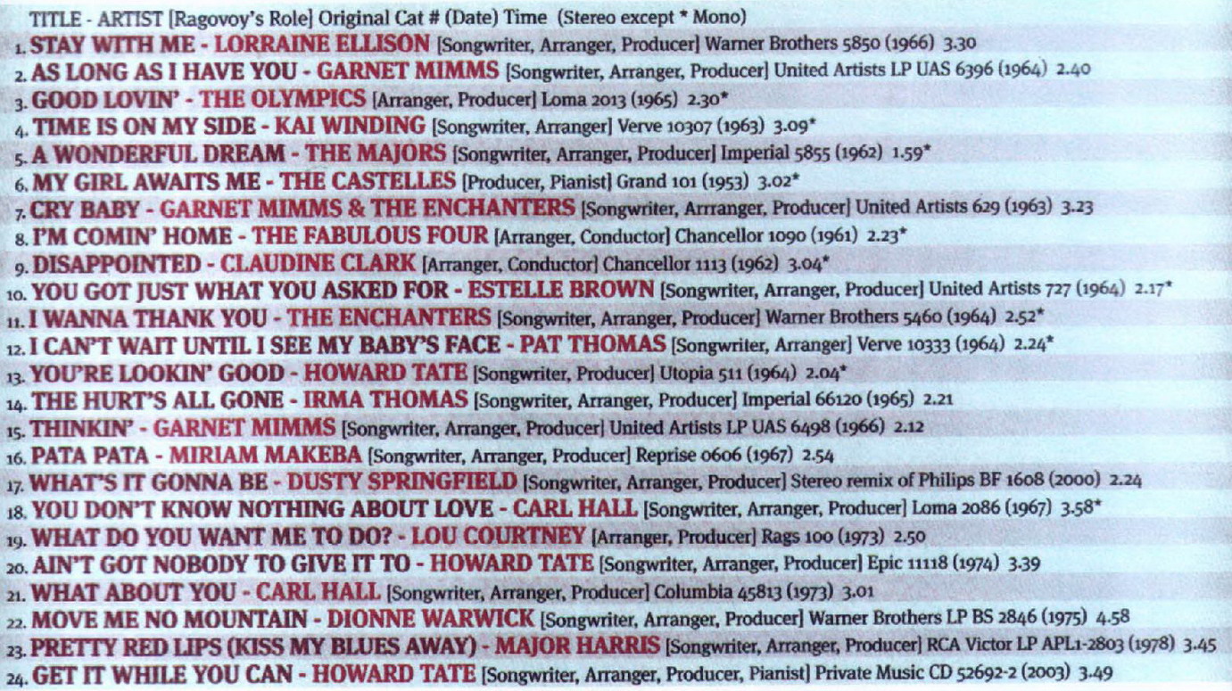 Ende der 50er, Anfang der 60er arbeitete Ragovoy bei Cancellor Records als Arrangeur für Frankie Avalon und komponierte "About This Thing Called Love" für Fabian.