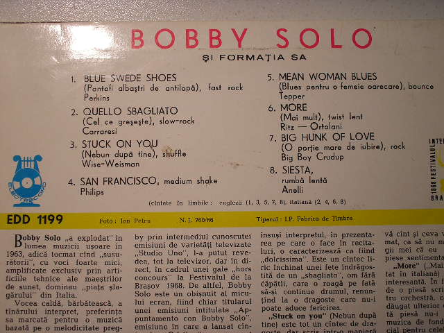 Bobby Solo, 10-Inch LP aus Rumänien, bei der damals staatlichen rumänischen Plattenfirma ELECTRECORD verlegt im Jahr 1968.