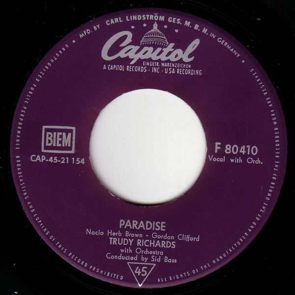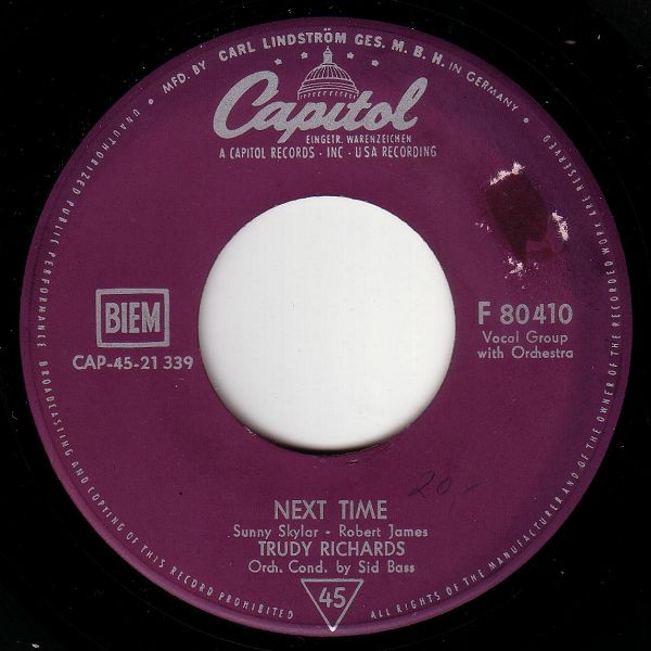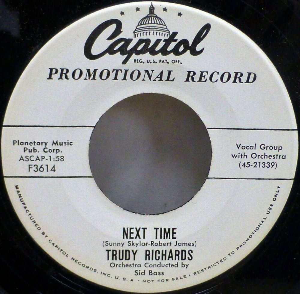 06 57....F 80 410....TRUDY RICHARDS Orch. Cond. by Sid Bass..Next Time/TRUDY RICHARDS with Orchestra Conducted by Sid Bass..Paradise (CAPITOL 3614/3555)