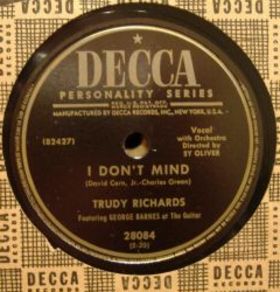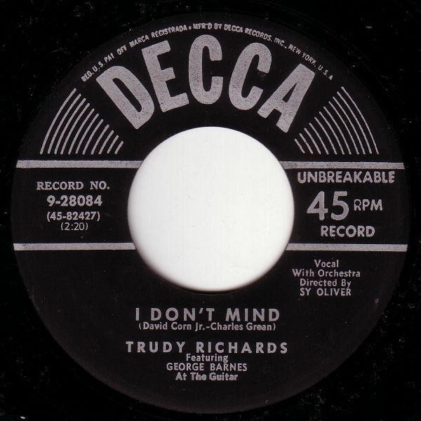 04 52....9-28084....TRUDY RICHARDS..I Never Loved Anyone But You (45 82426)/TRUDY RICHARDS Featuring GEORGE BARNES At The Guitar..I Don't Mind (45-82427)