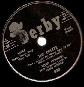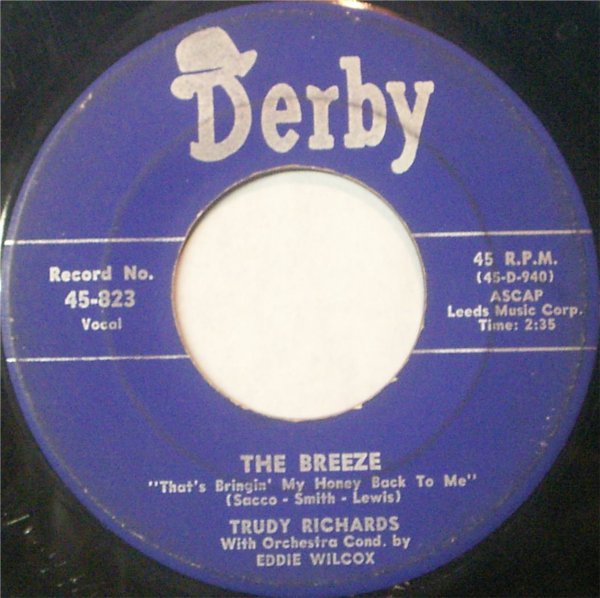 ?? 54....L 20 006....Trudy Richards..The Breeze (That's Bringin' My Honey Back)/I Can't Love You Any More (DERBY 823)