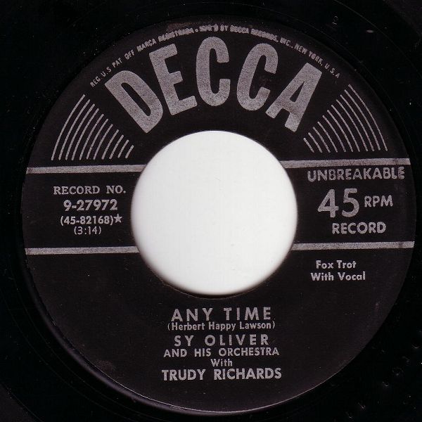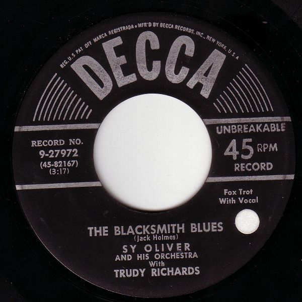02 52....9-27972....SY OLIVER AND HIS ORCHESTRA with TRUDY RICHARDS..The Blacksmith Blues (45 82167)/Any Time (45 82168)