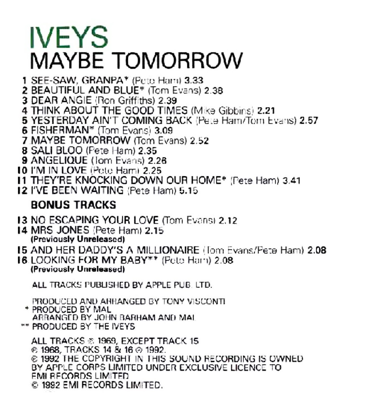 A world class band signed up to Apple under the name The Iveys, however it was not until they changed their name to Badfinger did they finally make it. Maybe Tomorrow was the first Apple single for the band but even this shows what great talent there was in the band and the song writing partnership of Ham and Evans. Produced by Tony Visconti this single is a sign of the great things to come for the band. Issued in a plain Apple sleeve.